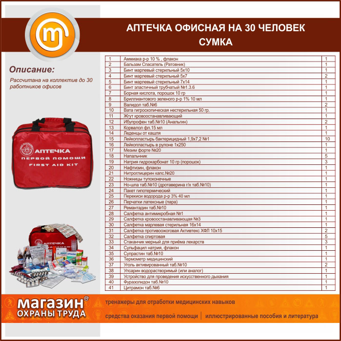 Аптечка ОФИСНАЯ (до 30 человек) - сумка в Великом Новгороде купить