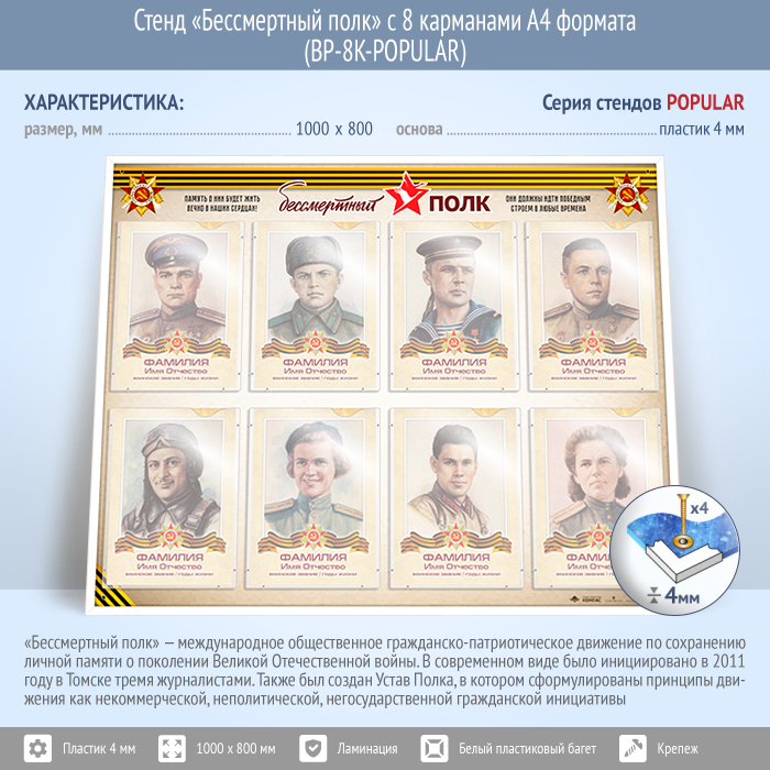 Стенд «Бессмертный полк» с 8 карманами А4 формата (BP-8K)