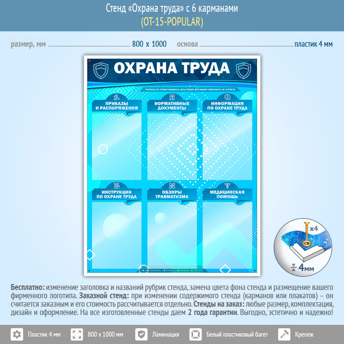 Стенд «Охрана труда» с 6 карманами (OT-15-POPULAR)