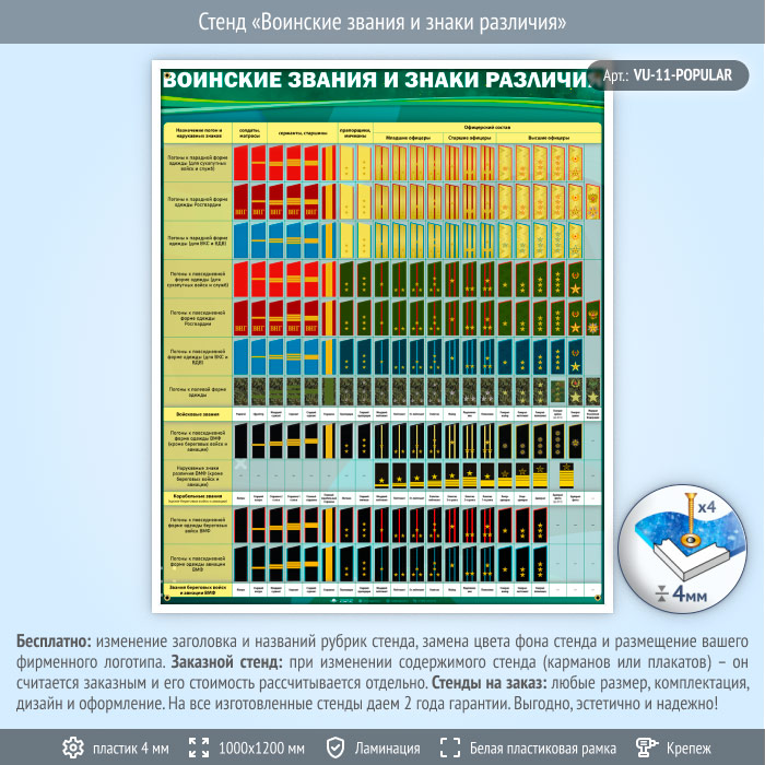 Стенд «Воинские звания и знаки различия» (VU-11)