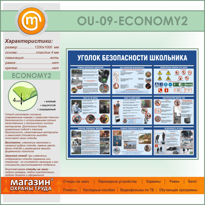 Стенд «Уголок безопасности школьника» (OU-09-ECONOMY2) в Великом Новгороде купить