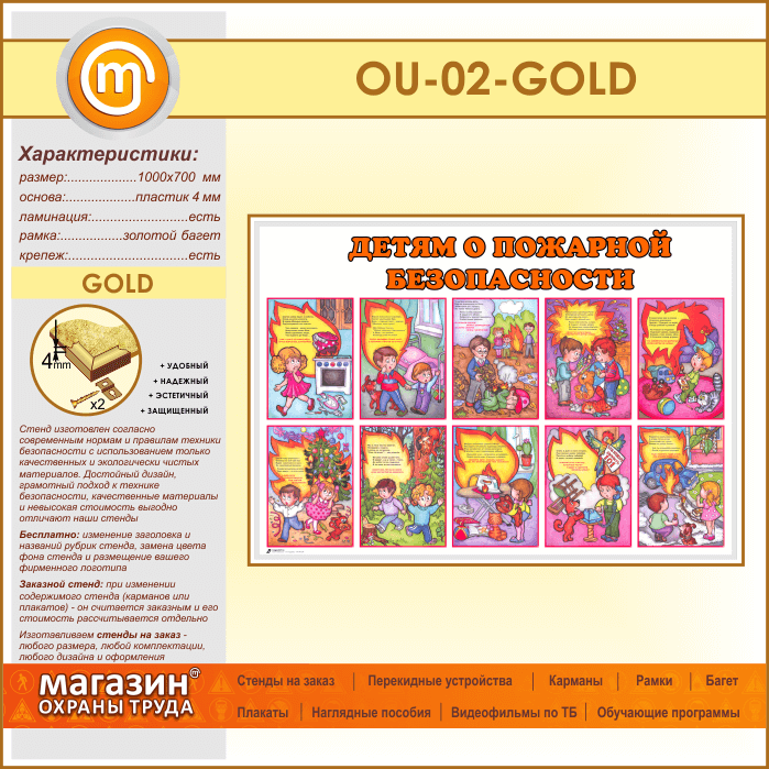 Стенд «Детям о пожарной безопасности» (OU-02-GOLD) в Великом Новгороде купить