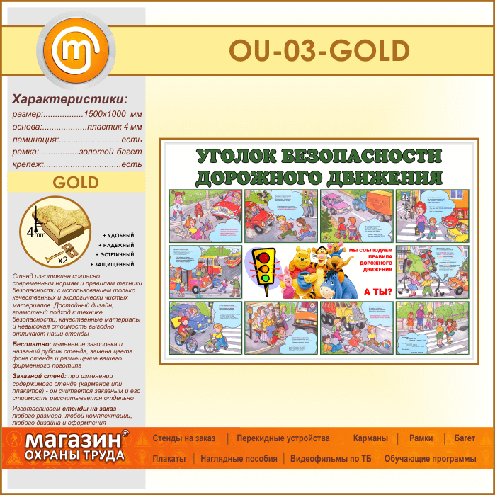 Стенд «Уголок безопасности дорожного движения» (OU-03-GOLD) в Великом Новгороде купить