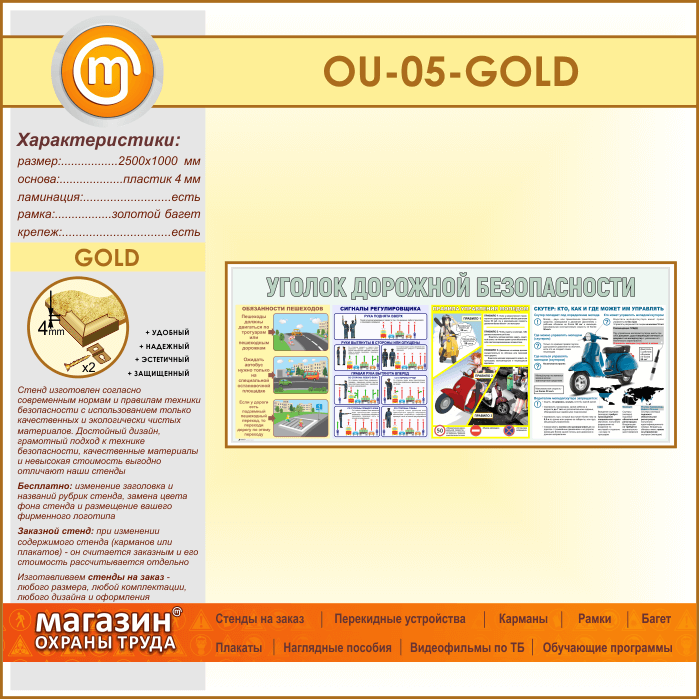 Стенд «Уголок дорожной безопасности» (OU-05-GOLD) в Великом Новгороде купить