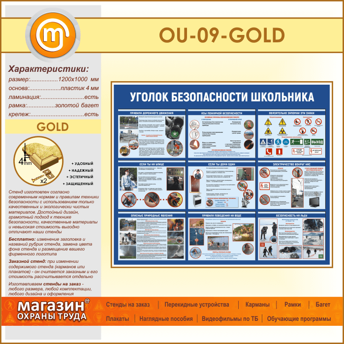 Стенд «Уголок безопасности школьника» (OU-09-GOLD) в Великом Новгороде купить