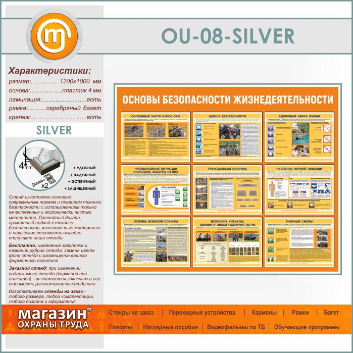 Стенд «Основы безопасности жизнедеятельности» (OU-08-SILVER) в Великом Новгороде купить