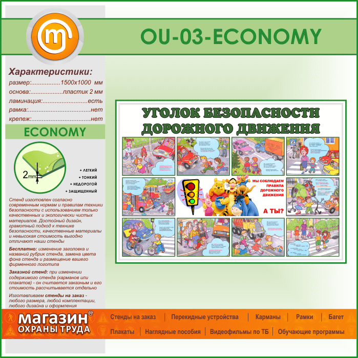Стенд «Уголок безопасности дорожного движения» (OU-03-ECONOMY) в Великом Новгороде купить