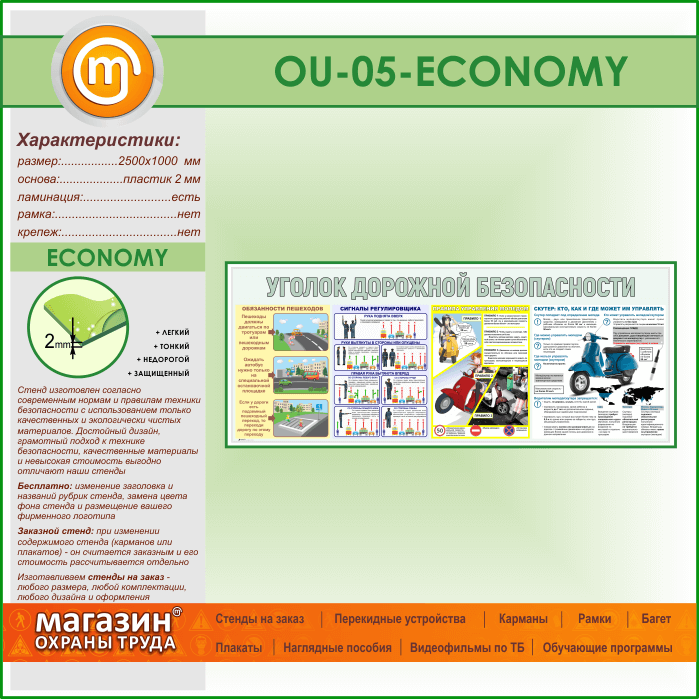 Стенд «Уголок дорожной безопасности» (OU-05-ECONOMY) в Великом Новгороде купить