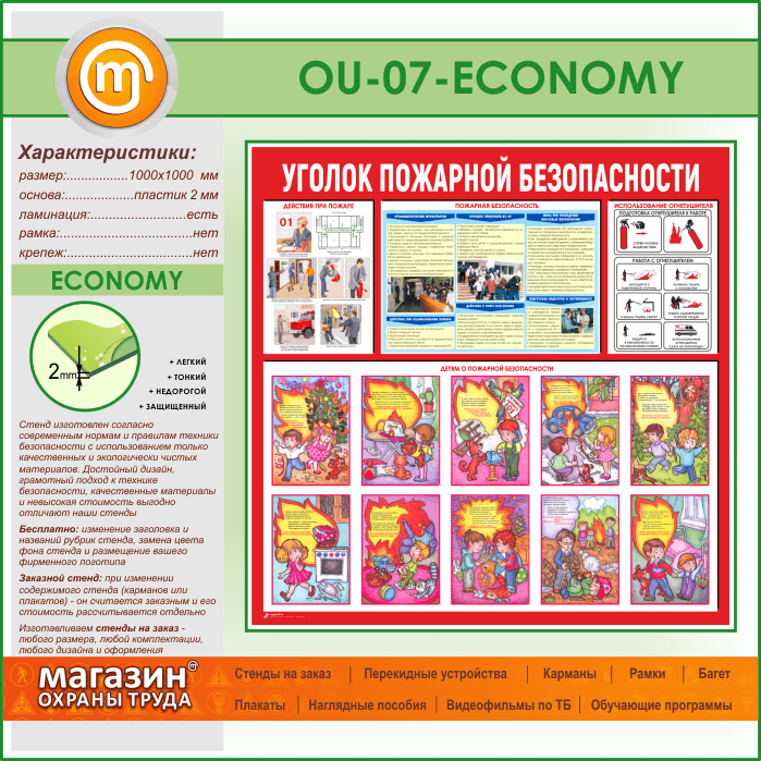 Стенд «Уголок пожарной безопасности» (OU-07-ECONOMY) в Великом Новгороде купить
