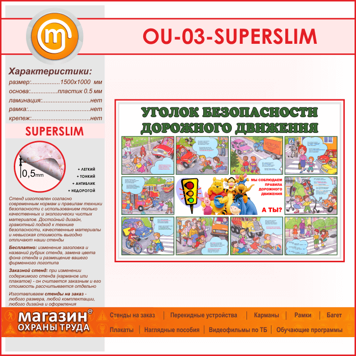 Стенд «Уголок безопасности дорожного движения» (OU-03-SUPERSLIM) в Великом Новгороде купить
