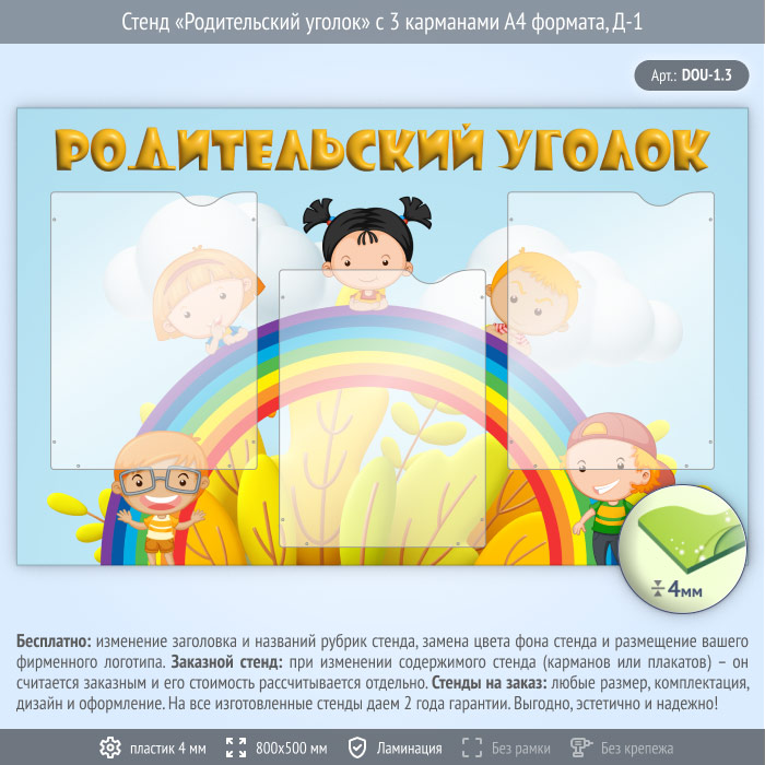 Стенд «Родительский уголок» с 3 карманами А4 формата (DOU-1.3) в Великом Новгороде купить