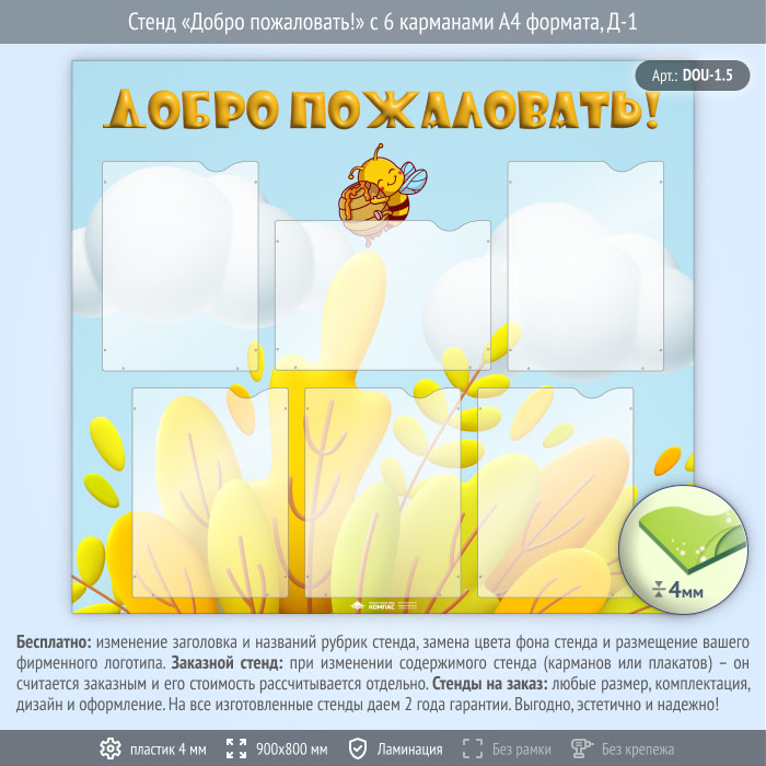 Стенд «Добро пожаловать!» с 6 карманами А4 формата (DOU-1.5) в Великом Новгороде купить