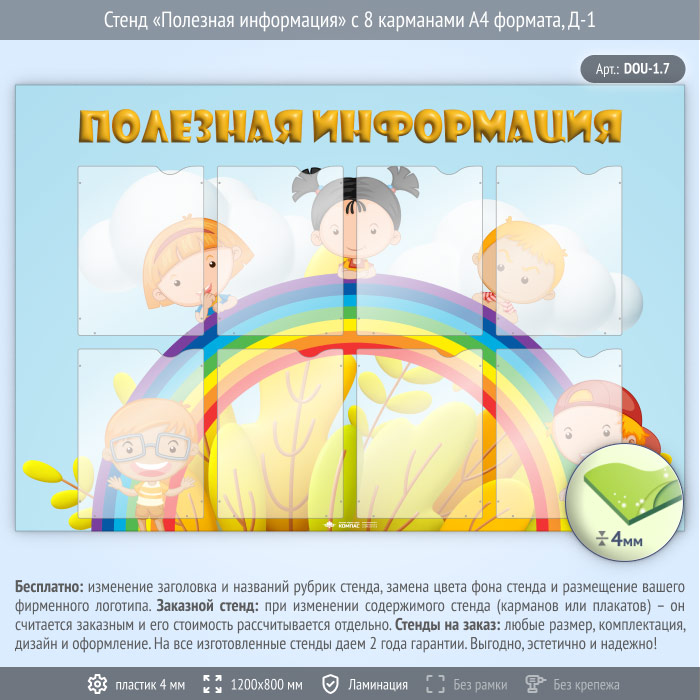 Стенд «Полезная информация» с 8 карманами А4 формата (DOU-1.7) в Великом Новгороде купить