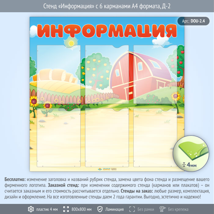 Стенд «Информация» с 6 карманами А4 формата (DOU-2.4) в Великом Новгороде купить