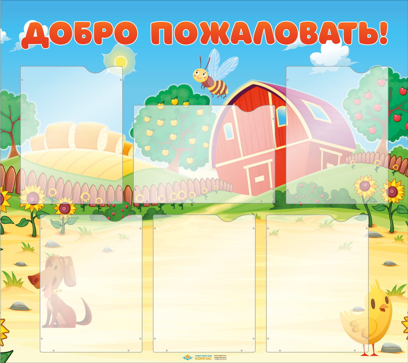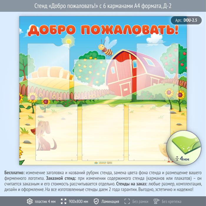 Стенд «Добро пожаловать!» с 6 карманами А4 формата (DOU-2.5) в Великом Новгороде купить