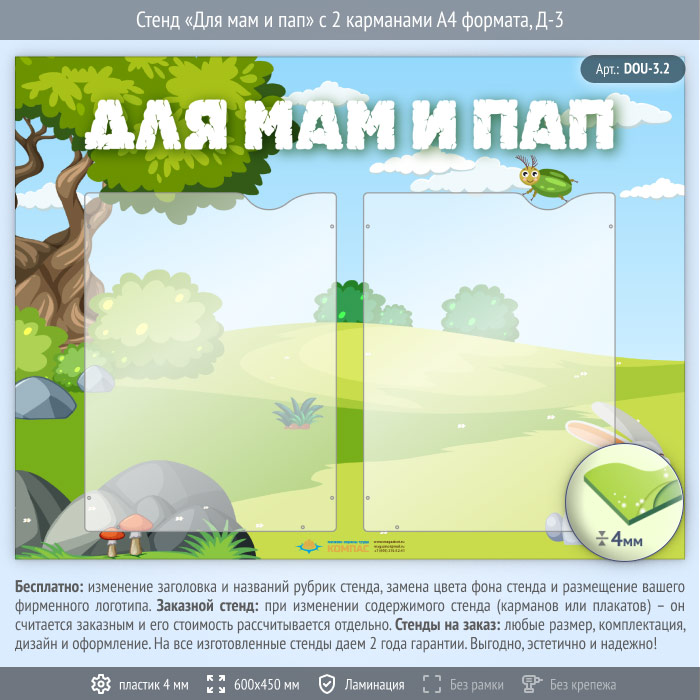 Стенд «Для мам и пап» с 2 карманами А4 формата (DOU-3.2) в Великом Новгороде купить