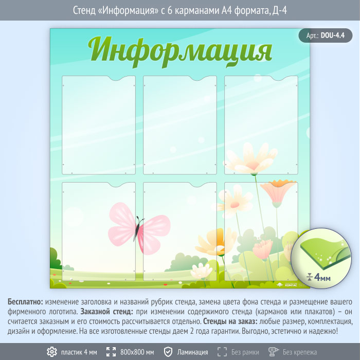 Стенд «Информация» с 6 карманами А4 формата (DOU-4.4) в Великом Новгороде купить
