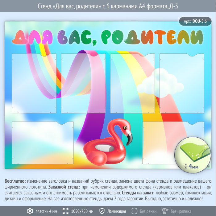 Стенд «Для вас, родители» с 6 карманами А4 формата (DOU-5.6) в Великом Новгороде купить