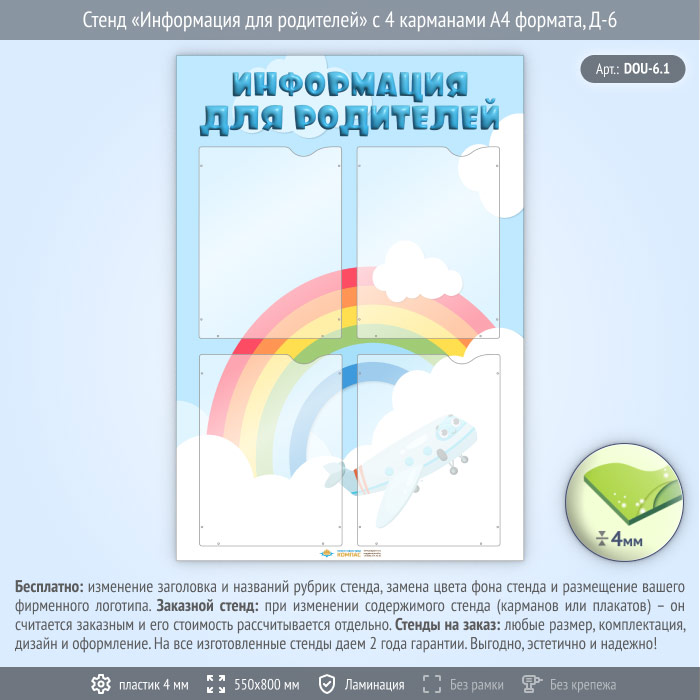 Стенд «Информация для родителей» с 4 карманами А4 формата (DOU-6.1) в Великом Новгороде купить