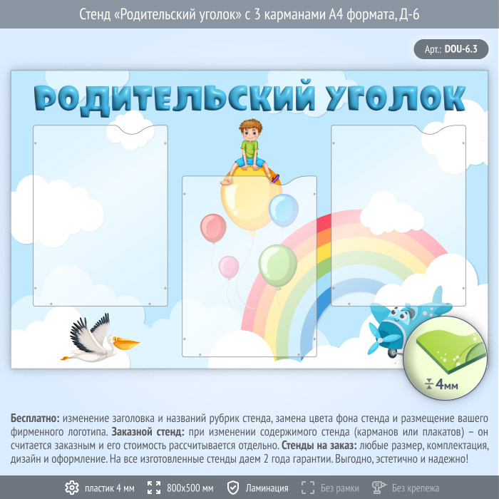 Стенд «Родительский уголок» с 3 карманами А4 формата (DOU-6.3) в Великом Новгороде купить