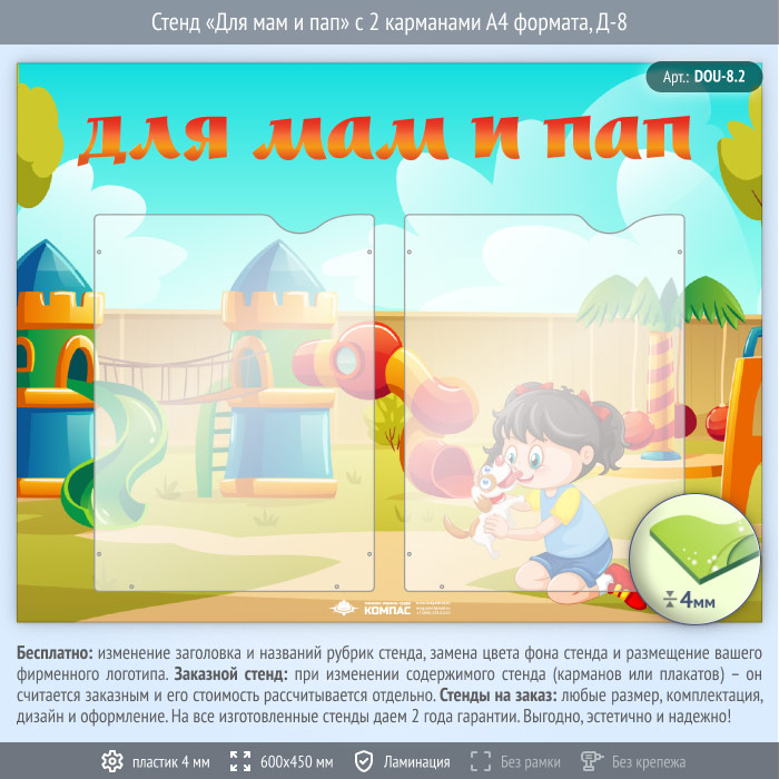 Стенд «Для мам и пап» с 2 карманами А4 формата (DOU-8.2) в Великом Новгороде купить