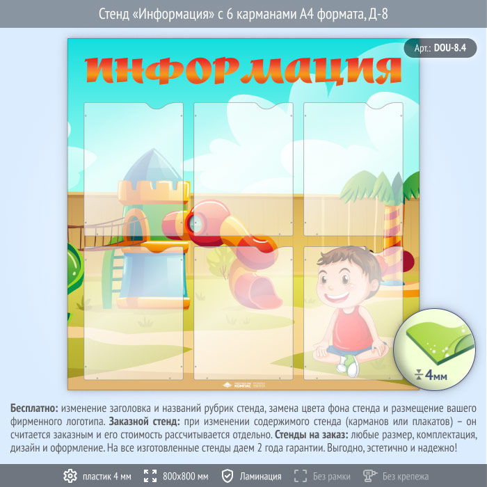 Стенд «Информация» с 6 карманами А4 формата (DOU-8.4) в Великом Новгороде купить