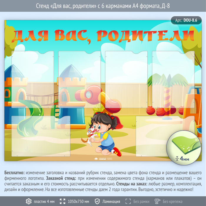 Стенд «Для вас, родители» с 6 карманами А4 формата (DOU-8.6) в Великом Новгороде купить