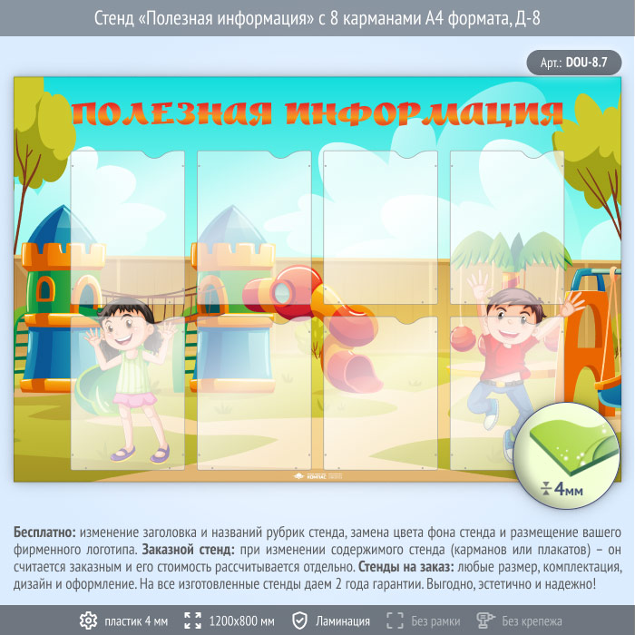 Стенд «Полезная информация» с 8 карманами А4 формата (DOU-8.7) в Великом Новгороде купить