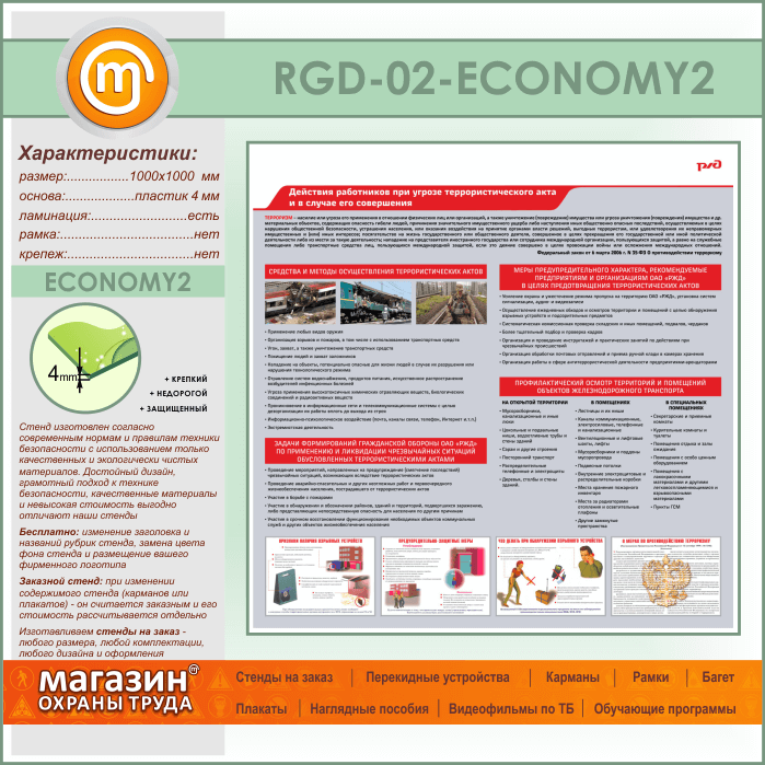 Стенд «Действия работников при угрозе совершения террористического акта и в случае его совершения» (RGD-02-ECONOMY2) в Великом Новгороде купить