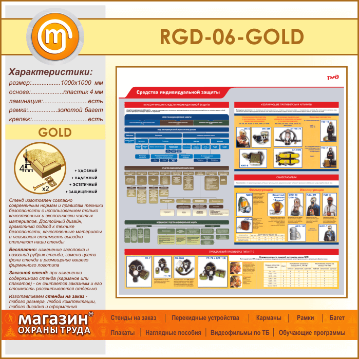 Стенд «Средства индивидуальной защиты» (RGD-06-GOLD) в Великом Новгороде купить