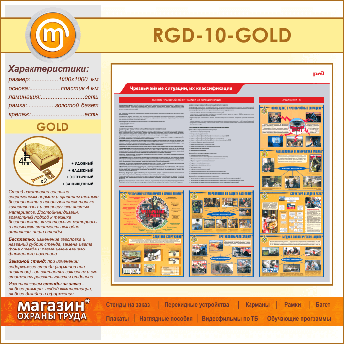 Стенд «Чрезвычайные ситуации, их классификация» (RGD-10-GOLD) в Великом Новгороде купить