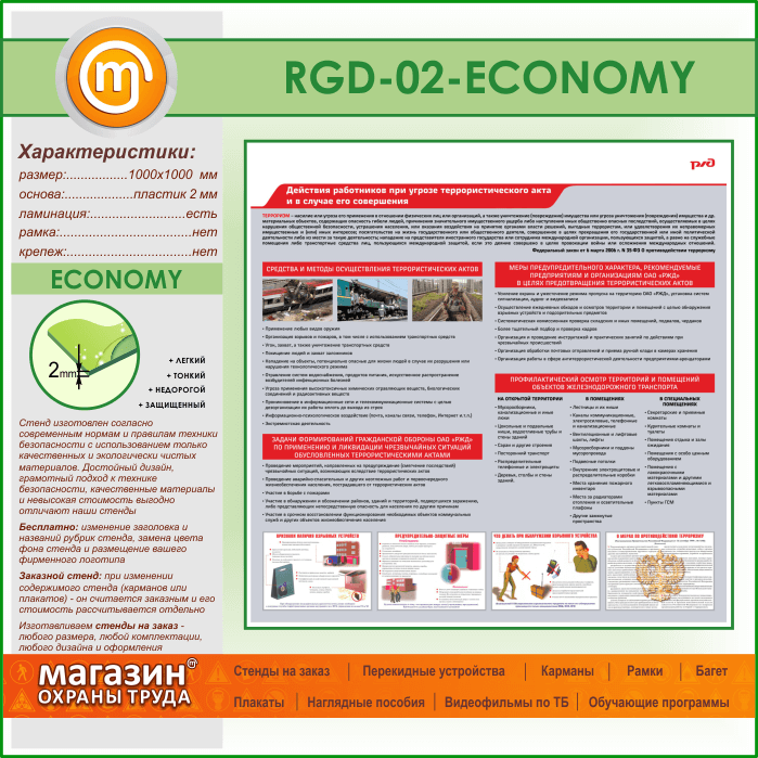 Стенд «Действия работников при угрозе совершения террористического акта и в случае его совершения» (RGD-02-ECONOMY) в Великом Новгороде купить