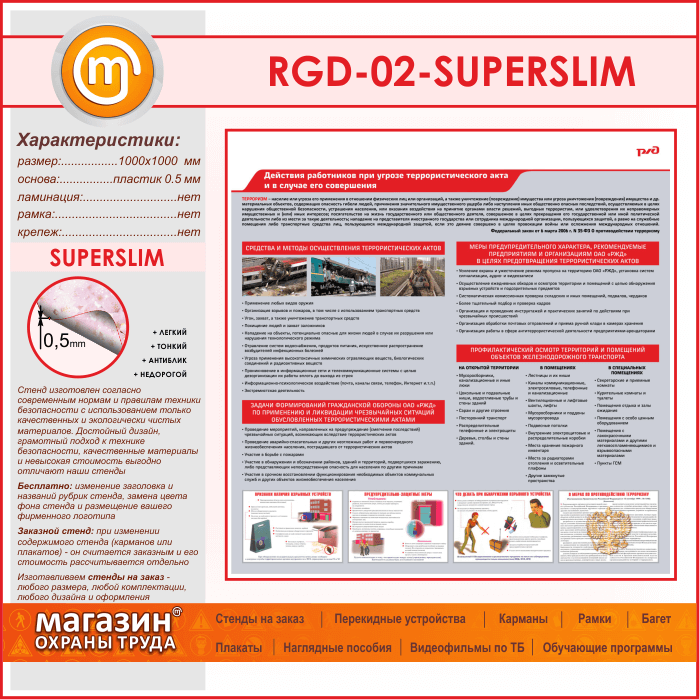 Стенд «Действия работников при угрозе совершения террористического акта и в случае его совершения» (RGD-02-SUPERSLIM) в Великом Новгороде купить