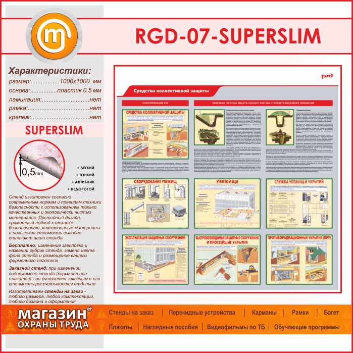 Стенд «Средства коллективной защиты» (RGD-07-SUPERSLIM) в Великом Новгороде купить