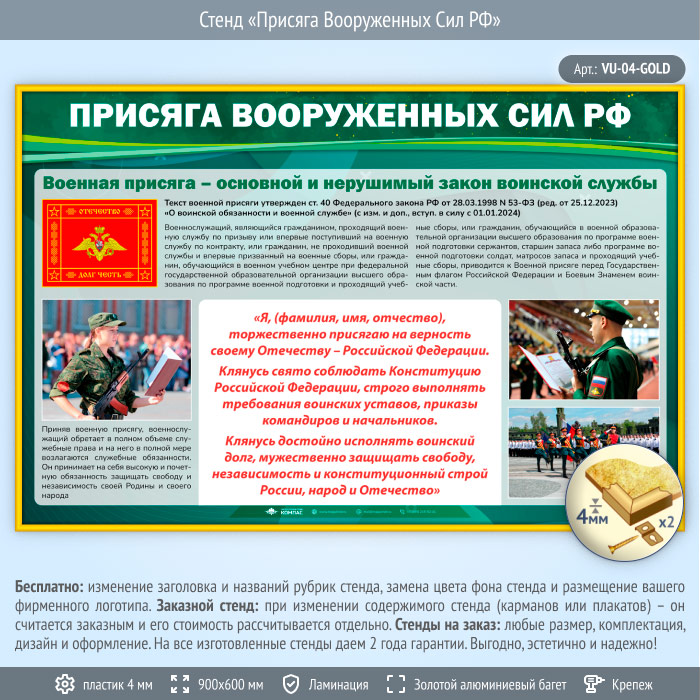 Стенд «Присяга Вооруженных Сил РФ» (VU-04-GOLD) в Великом Новгороде купить