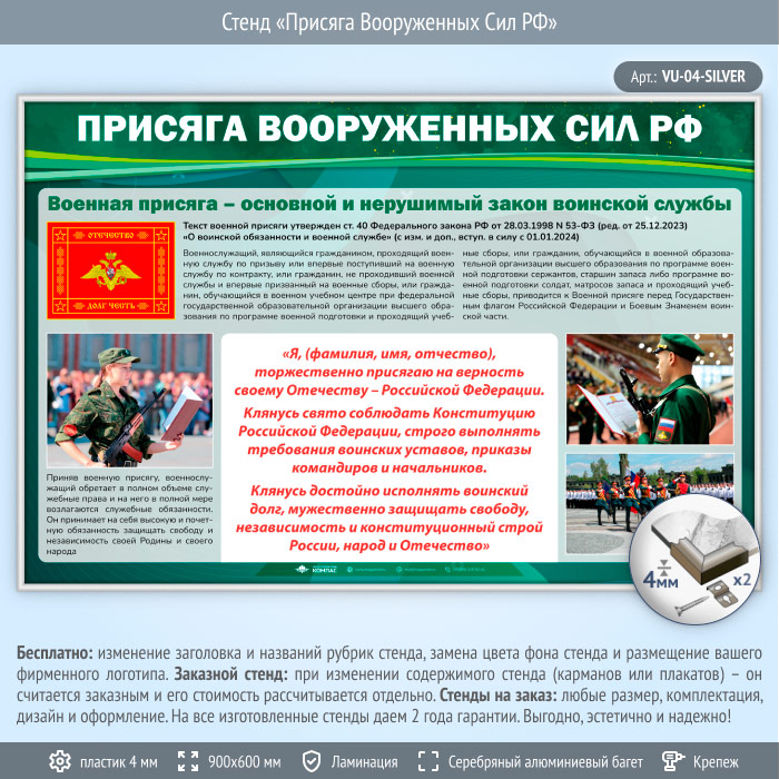 Стенд «Присяга Вооруженных Сил РФ» (VU-04-SILVER) в Великом Новгороде купить