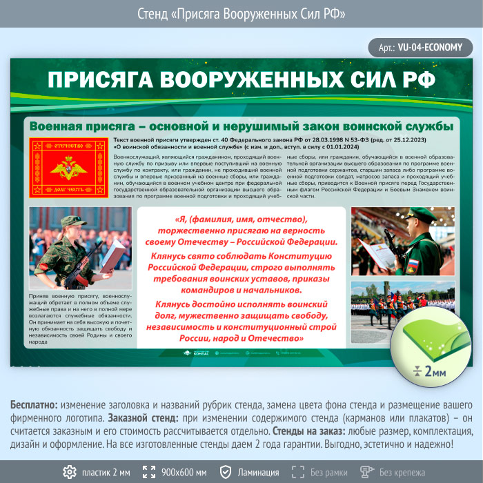 Стенд «Присяга Вооруженных Сил РФ» (VU-04-ECONOMY) в Великом Новгороде купить