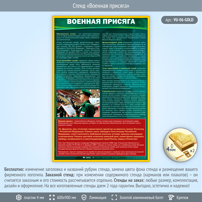 Стенд «Военная присяга» (VU-06-GOLD) в Великом Новгороде купить