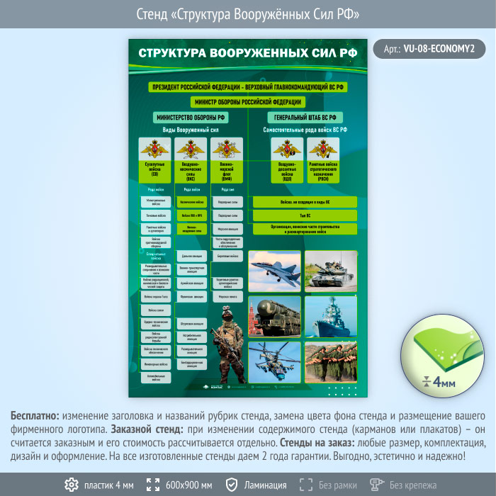 Стенд «Структура Вооружённых Сил РФ» (VU-08-ECONOMY2) в Великом Новгороде купить