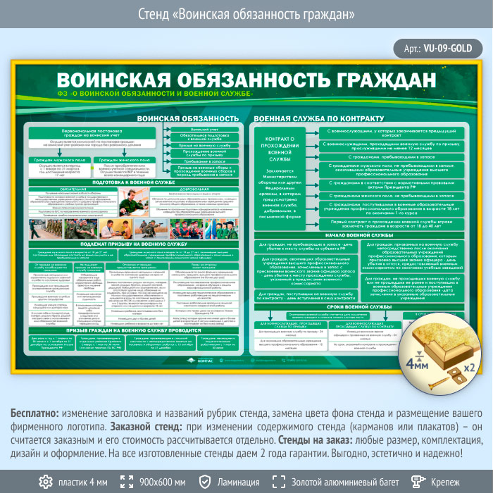 Стенд «Воинская обязанность граждан» (VU-09-GOLD) в Великом Новгороде купить