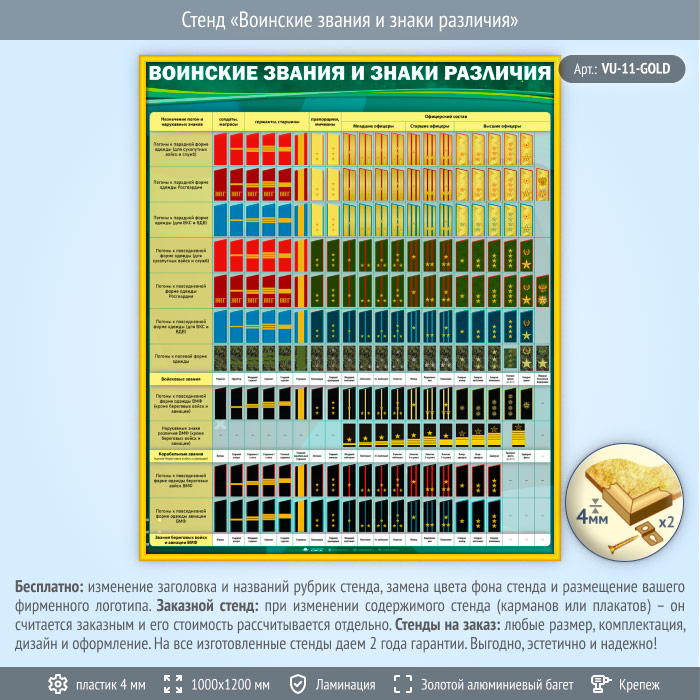 Стенд «Воинские звания и знаки различия» (VU-11-GOLD) в Великом Новгороде купить