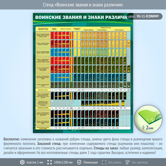 Стенд «Воинские звания и знаки различия» (VU-11-ECONOMY) в Великом Новгороде купить