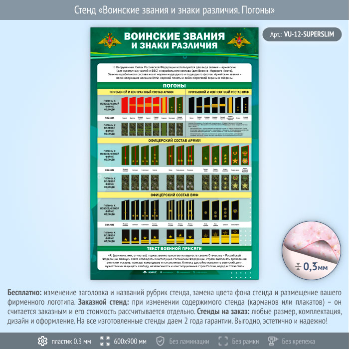 Стенд «Воинские звания и знаки различия. Погоны» (VU-12-SUPERSLIM) в Великом Новгороде купить