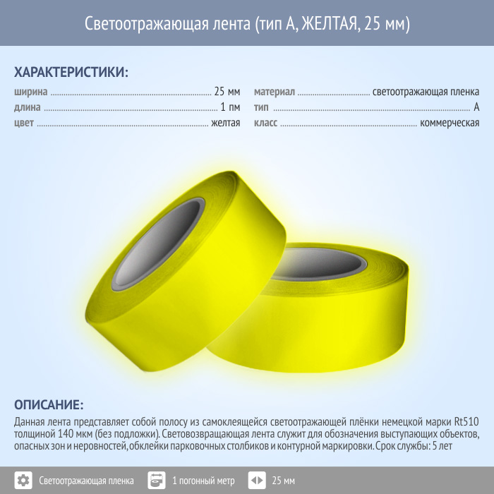 Светоотражающая однородная лента (тип А, ЖЕЛТАЯ, 25 мм х 1 п.м.) в Великом Новгороде купить