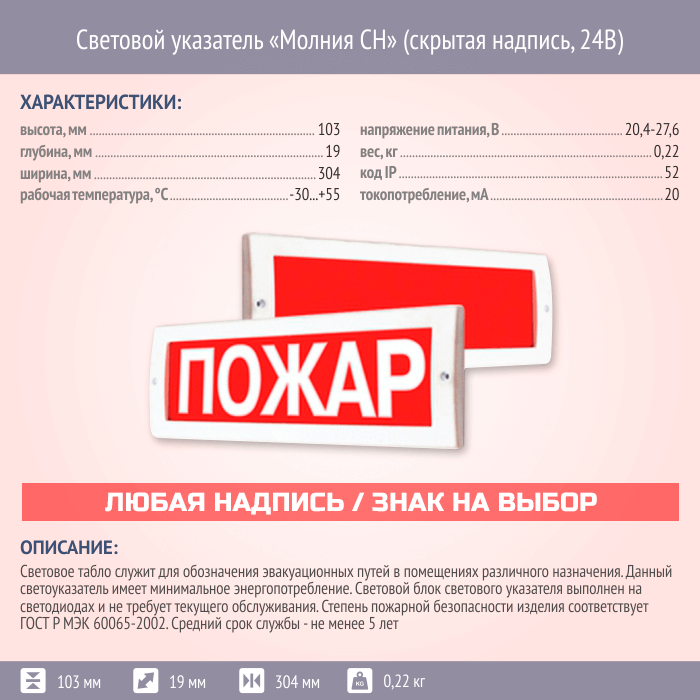 Световой указатель Молния СН (скрытая надпись, 24В) в Великом Новгороде купить