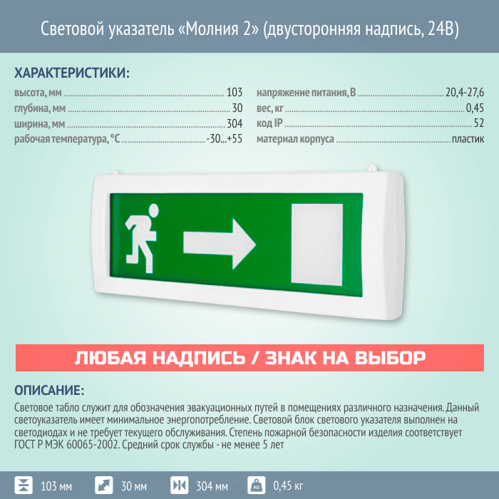 Световой указатель Молния 2 (двусторонняя надпись, 24В) в Великом Новгороде купить