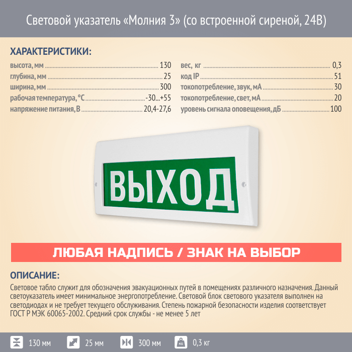 Световой указатель Молния 3 (со встроенной сиреной, 24В) в Великом Новгороде купить
