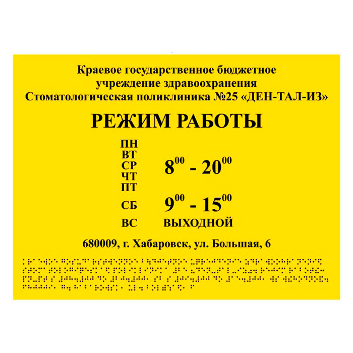 Тактильная вывеска с дублированием азбукой Брайля, ДС10 (полистирол 3 мм, 600х500 мм) в Великом Новгороде купить