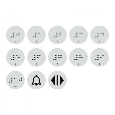 Тактильные наклейки для кнопок лифта с 0 по 10 этаж (набор), ДС95 (пленка, 20х20 мм, серебристый) в Великом Новгороде купить