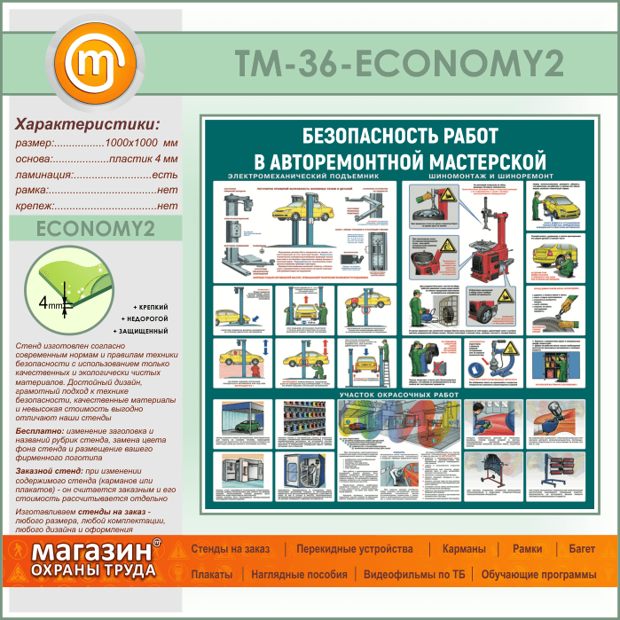 Стенд «Безопасность работ в авторемонтной мастерской» (TM-36-ECONOMY2) в Великом Новгороде купить